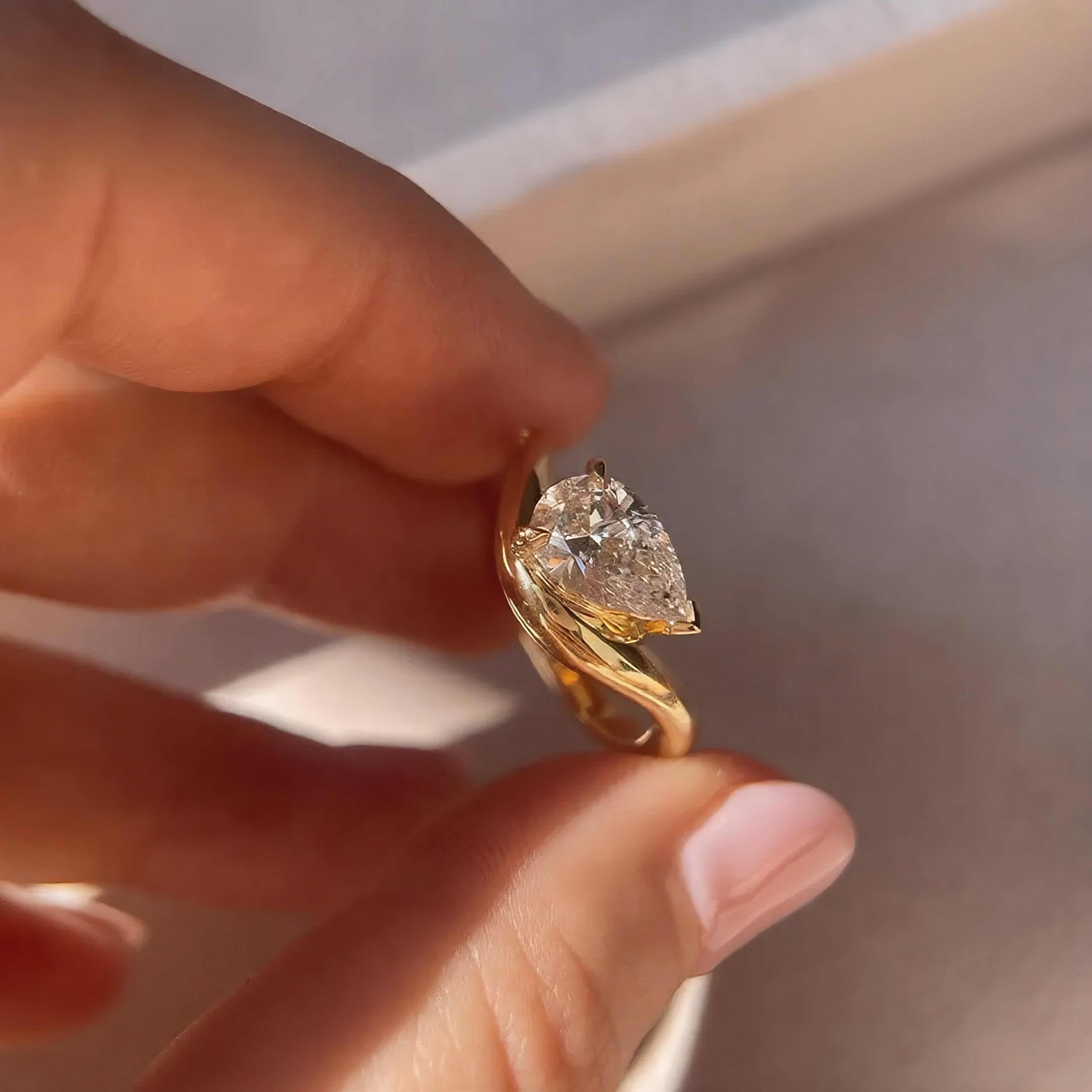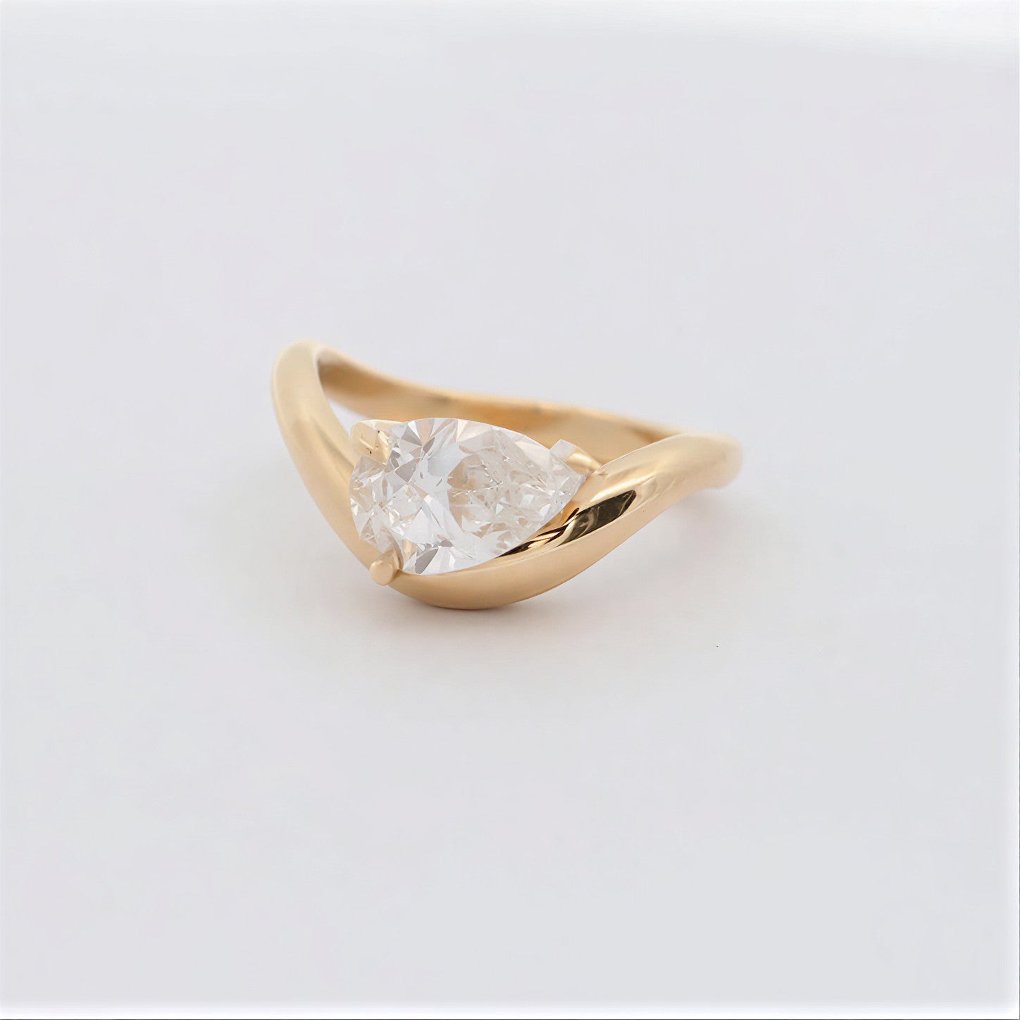 1.00 Carat Pear Cut Lab Grown Diamond Curved Ring, CVD Diamond Solitaire Ring For Wedding Gift, 14K Yellow Gold Anniversary Ring For Her